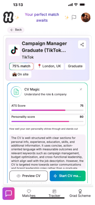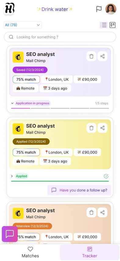 Swipe insight-packed job cards, matched to you from millions of listings. Auto-tailor your CV and get personalised prep to land the ones you love.